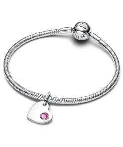 Wear your heart on your sleeve, literally. This sterling silver dangle charm pairs a pink man-made crystal with a smooth back — a symbol of love and personal meaning.