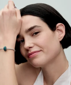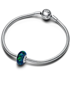 Channel the colors of the jungle with the Opalescent Green Charm. A lab-created iridescent opal features a spectrum of colors and streaks of glitter designed to evoke the vivid colors of the tropics. The charm also features a sterling silver core with a Pandora logo and imprinted dots. Pair this vibrant charm with other sterling silver styles to create a rich-hued focal point and remind yourself of the wild, free-spirited energy of nature and summer.