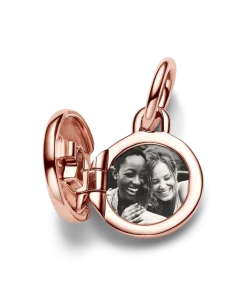 Keep what’s most dear to you close to your heart with the Openable & Engravable Love Locket Dangle Charm. This 14k rose gold-plated locket charm features a clear cubic zirconia stone on the front in the shape of a keyhole, and opens and closes securely so you can keep a tiny picture, note or lock of hair inside. The inside of the locket is engraved with the message