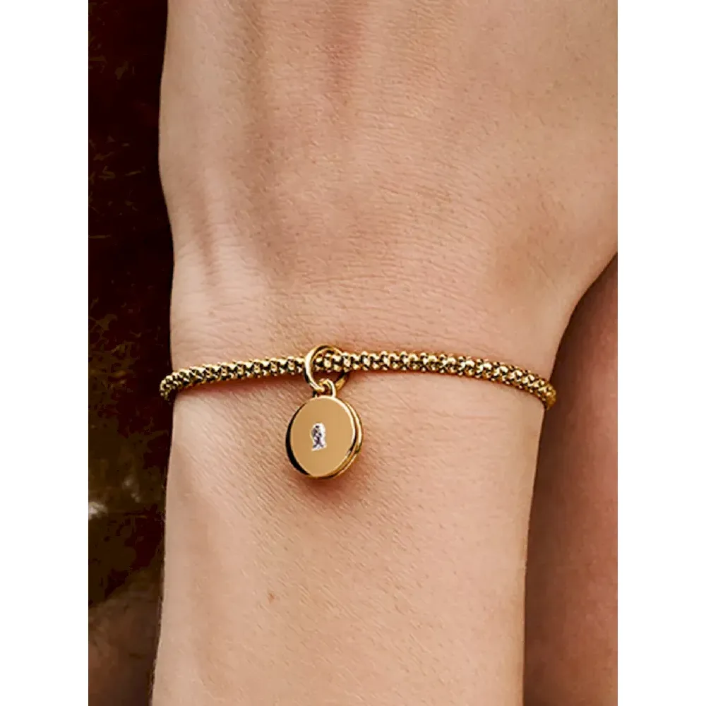 Keep what’s most dear to you close to your heart with the Openable & Engravable Love Locket Dangle Charm. This 14k gold-plated locket charm features a clear cubic zirconia stone on the front in the shape of a keyhole, and opens and closes securely so you can keep a tiny picture, note or lock of hair inside. The inside of the locket is engraved with the message