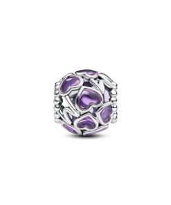 Add a cool-toned accent to your look with the Openwork Hearts Mom Charm. Transparent lavender enamel hearts with sterling silver borders form a round charm, which also features microbeads and the word
