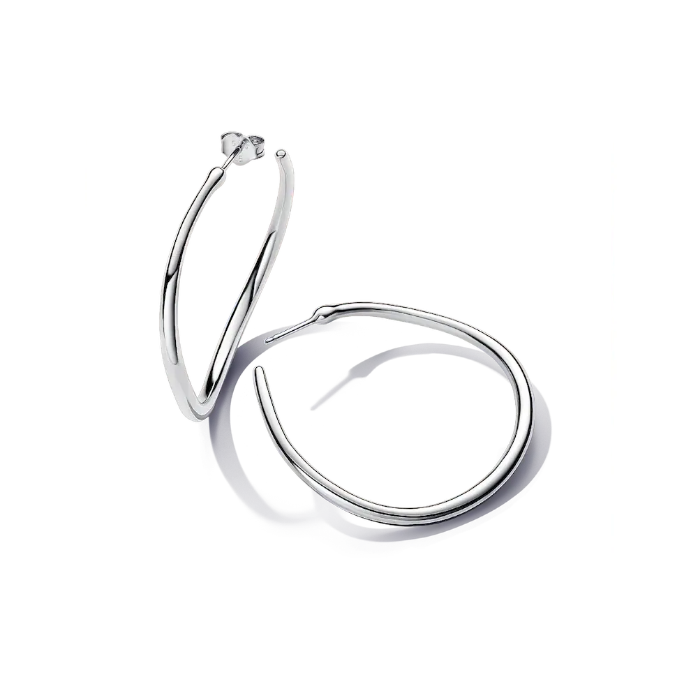 Play with linear curves when you wear the Organically Shaped 42 mm Open Hoop Earrings. This sterling silver set features slightly wavy open hoops with a rounded profile and varying thickness. The result is a delicate, fluid and organic look, evoking the ebbs and flows that can be found in nature. This earring set is a must-have addition to any hoop lover’s collection, whether that’s you or a stylish loved one.