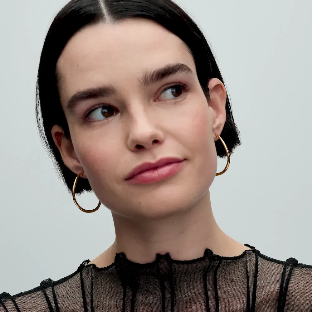 Play with linear curves when you wear the Organically Shaped 42 mm Open Hoop Earrings. This 14k gold-plated set features slightly wavy open hoops with a rounded profile and varying thickness. The result is a delicate, fluid and organic look, evoking the ebbs and flows that can be found in nature. This earring set is a must-have addition to any hoop lover’s collection, whether that’s you or a stylish loved one.