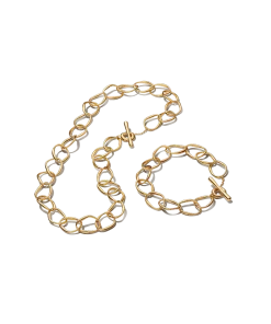 Make a statement with fluid, sculptural links that balance boldness and ease. This warm-toned set adds effortless elegance to any look, whether worn alone or layered for added impact.