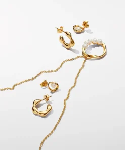 Step into your element with the Organically Shaped Oval & Treated Freshwater Cultured Pearl Stud Earrings. Each earring features one treated freshwater cultured pearl tucked inside an organic-looking 14k gold-plated oval with varying thickness. Each treated freshwater cultured pearl is unique and can vary in size and color; normal wear and tear may occur with this material. Our freshwater cultured pearls are treated with bleaching and luster enhancement.