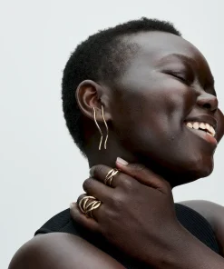 A contemporary mix between a stud and a drop earring. In this pair of studs, the bottom part of the softly shaped wire extends below the ear lobe, like a drop earring. Inspired by the imperfect forms in nature, these earrings are a versatile essential.