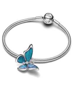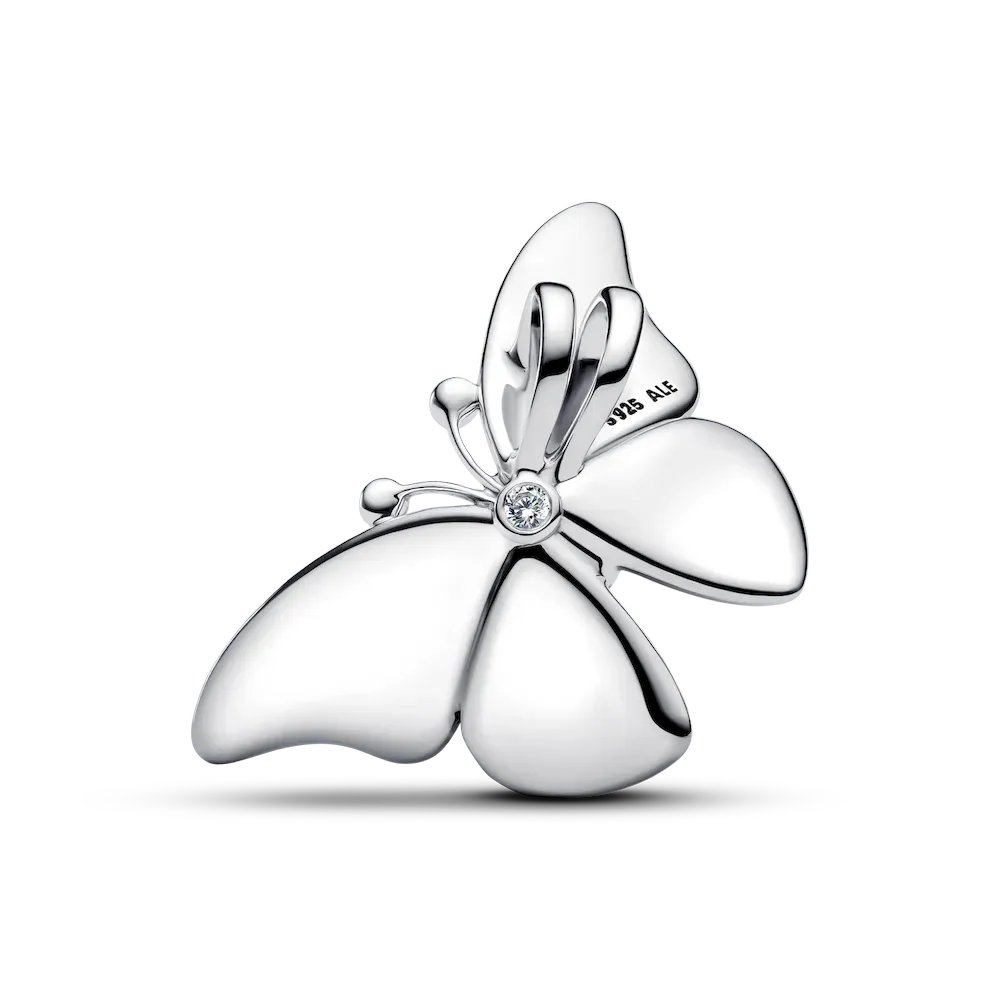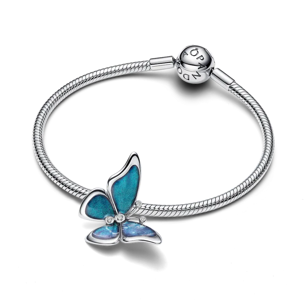 This oversized sterling silver charm captures the beauty and grace of a real butterfly, as if it has landed for a moment on your jewellery. Iridescent enamel on the wings creates a vivid colour effect that shifts with the light. Sparkling stones bring a finishing touch to the body and antennae. Wear this eye-catching piece as a symbol of the butterfly’s transformative journey, inspiring us to embrace change and growth.