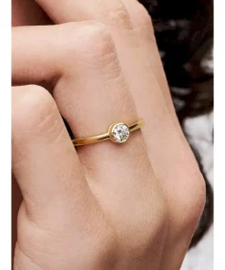 Meet your new essential lab-grown diamond ring. The Pandora Era Bezel 14k Gold Lab-grown Diamond Ring features a 0.25 carat lab-grown diamond in a bezel setting with a sleek, contemporary aesthetic. Cut-outs on the back and sides of the bezel setting let in the light for ultimate sparkle. A classic that brilliantly rises above time, this 14k gold ring is the perfect elevated staple. Wear it alone for a minimalist styling or add subtle sparkle to your ring stack. Each Pandora Lab-grown diamond is treated with a post-growth color enhancement called annealing.