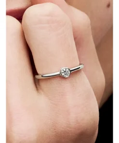 Meet your new essential lab-grown diamond ring. The Pandora Era Bezel Sterling Silver Lab-grown Diamond Ring features a 0.15 carat lab-grown diamond in a sterling silver bezel setting with a sleek, contemporary aesthetic. Cut-outs on the back and sides of the bezel setting let in the light for ultimate sparkle. A classic that brilliantly rises above time, it’s the perfect elevated staple. Wear it alone for a minimalist styling or add subtle sparkle to your ring stack. Each Pandora Lab-grown diamond is treated with a post-growth color enhancement called annealing.