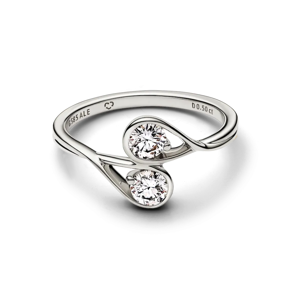 Celebrate your power to shine with our Pandora Infinite 14k White Gold Double Lab-grown Diamond Ring. Hand-set in solid 14k white gold with a crossover infinity design, this ring features two round brilliant excellent cut lab-grown diamonds, totaling 0.50 carat, each placed inside its own infinity loop. A combined prong-and-bezel setting inside the open profile creates a floating effect for each diamond. Inspired by infinite connections, the modern infinity shape flows seamlessly around the stones and represents your eternal bonds. Wear it as a sparkling statement on its own or stacked with other rings from the Pandora Infinite collection. Each Pandora Lab-grown diamond is treated with a post-growth color enhancement called annealing.