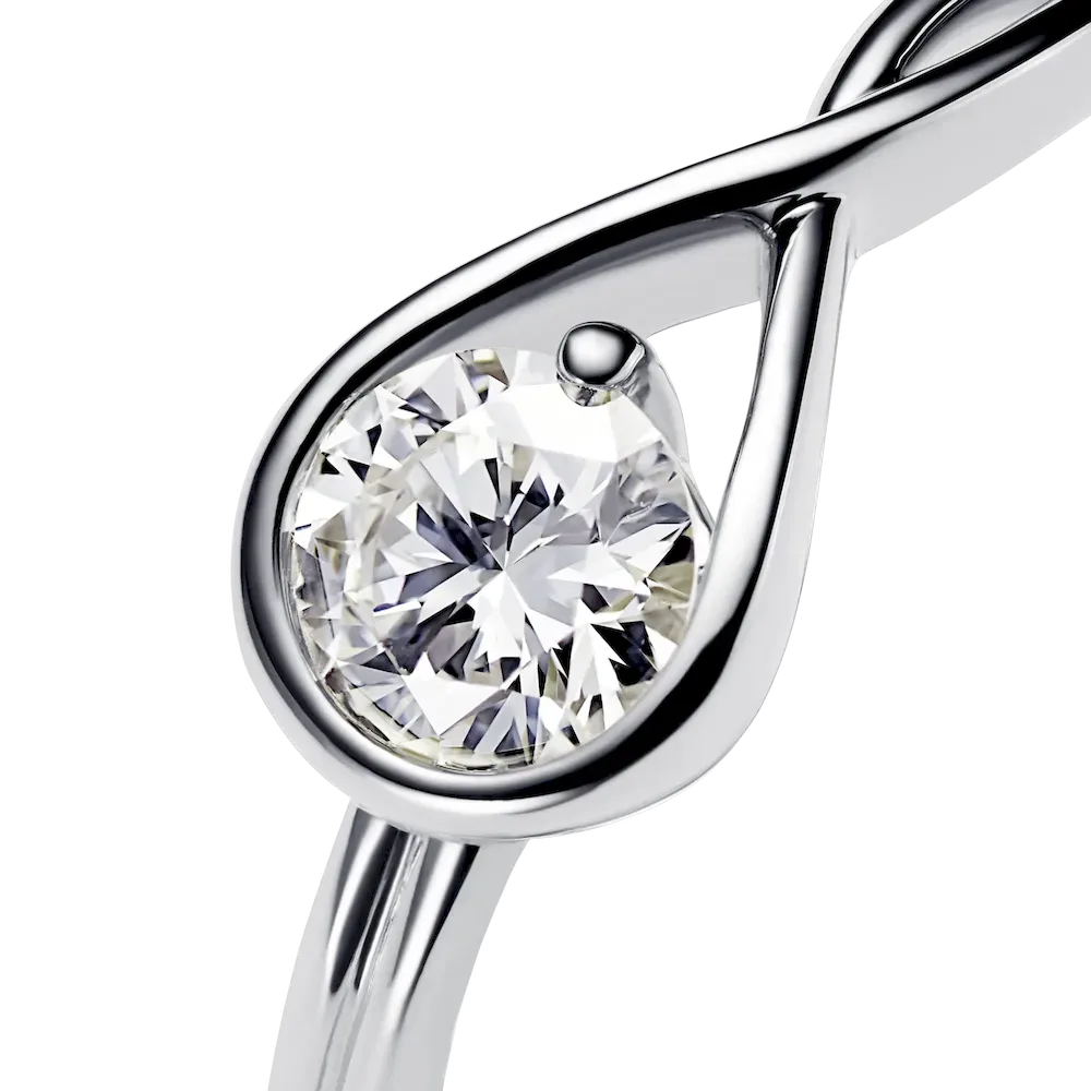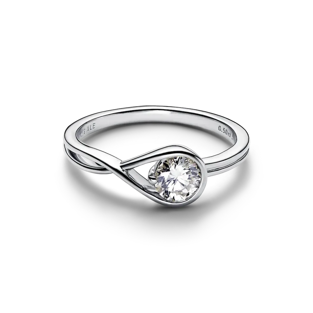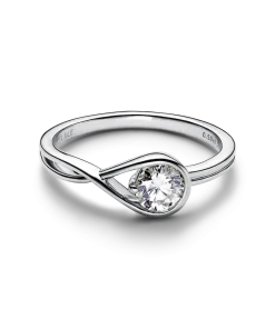 A solid sterling silver ring hand set with a 0.50 carat lab-grown diamond. A beautiful statement of empowerment and possibility, or a simple yet eloquent declaration of love. This ring features a scintillating round brilliant excellent cut lab-grown diamond in a modern infinity setting that flows seamlessly around the stone. It can be worn alone or stacked with other rings from the Pandora Infinite collection. Pandora Infinite lab-grown diamonds at and above 0.50 carat are certified by IGI. Each Pandora Lab-grown diamond is treated with a post-growth color enhancement called annealing.