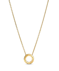 Choose sophisticated style with the Pandora Logo Pavé Circle Collier Necklace. Hand-finished in 14k gold plating, the necklace features an open circle with clear cubic zirconia pavé. The pavé is framed by micro-beading and the sides of the circle have cut-out hearts. The back side of the circle is polished with an engraved Pandora logo. Perfect for everyday style or special occasions, this necklace will elevate your look no matter how you wear it.