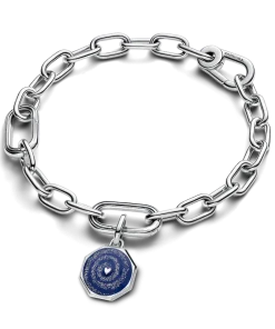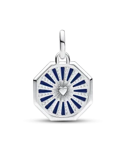 Feel the cosmic love with Pandora ME Galaxy Heart Medallion Charm. One side of this sterling silver octagonal medallion charm has a raised heart surrounded by glittery deep blue hand-applied enamel. The reverse side features a raised heart surrounded by cut-out rays with microbeading. Designed to be styled on openable links, wear this medallion charm as a reminder that love always wins and is at the heart of our mysterious universe. Compatible with Pandora ME and Pandora Moments.