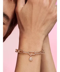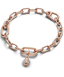 Keep luck on your side when you wear the Pandora ME Lucky Ladybird Mini Dangle Charm. This 14k rose gold-plated mini dangle charm is shaped like a ladybird with wings slightly open and studded with round sparkling stones of different sizes. A symbol of luck and protection, this delicate ladybird charm will bring a dash of whimsy to your collection. Style it with other mini dangle charms that speak to you for a look that’s authentically you. Compatible with Pandora ME and Pandora Moments.