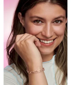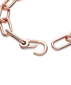 Wear your mantra on your wrist. Our 14k rose gold-plated Pandora ME Medium-Link Chain Bracelet holds endless styling possibilities. The bracelet features three openable links, designed with a grooved surface to set them apart, styling links and a carabiner clasp closure. First customise your link chain: one set of interlocking styling links can be swapped out between each openable link for four small interlocking links, a styling double link or one styling link – keep the original length or adjust it to suit you. Once you’ve curated your link chains, remix your look with up to two meaningful medallion charms or up to eight mini dangle charms on each openable link, or with one medallion charm per styling link to show the world what you’re about. Please note this item is only compatible with Pandora ME jewelry and will not fit our other collections.