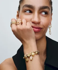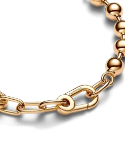 The Pandora ME Metal Bead & Link Chain Bracelet proves that opposites attract. Pairing two essential styles – metal beads and chain links – this 14k gold-plated bracelet can be customized by styling the links with mini dangle charms or medallion charms. Balancing 90s punk rock influences with the timelessness of warm gold tones, this statement bracelet can stand alone or be layered and styled in fresh ways every day.