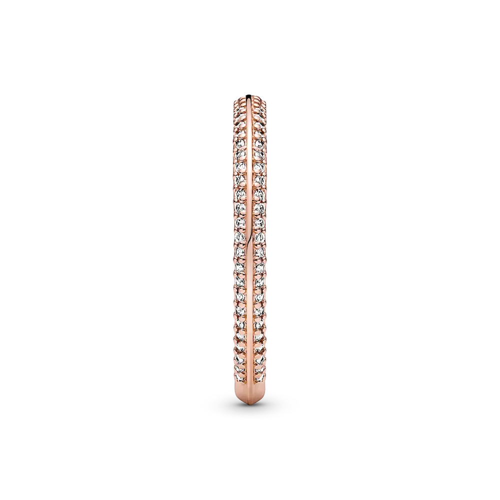 Remix your ring stacks with this Pandora ME Pavé Ring, ready to be styled into fresh metal and color combinations that suit your mood every day. This 14k rose gold-plated ring has been pavé set with 72 brilliant-cut cubic zirconia for a radiant look. Embrace the ultimate level of personalization by connecting this statement stacking ring to your other faves using the Pandora ME Two-ring or Three-ring Openable Links, then add up to three mini dangle charms that express who you are. Mix and match colors and stones next to each other to give your stacks a glow up. Ready to re-style your double ring stack? Follow a few simple steps to make sure your two favorite pieces detach with ease, so you can remix your look over and over. Whatever ring pair you’re rocking, ensure that the Two-ring Openable Link part faces upwards and slide only one of the two rings to the opposite side. Next, take off any mini dangle charms through the opening, one at a time, before removing the other ring. You’re now ready to change it all up again! Please note this item is only compatible with Pandora ME jewelry and will not fit our other collections.