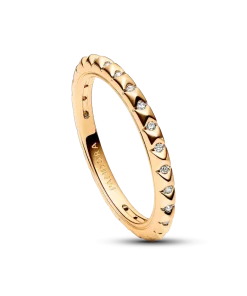 Step into your golden era with the Pandora ME Pyramids Ring. This 14k gold-plated ring is punctuated by pyramid studs with clear cubic zirconia stones set between them. A grooved line along the edges of the ring adds a subtle, sleek design detail. Edgy yet elegant, this effortlessly cool piece will become a go-to option that works with everything, inspiring you to customise a fresh look each day.