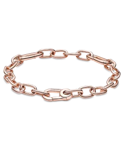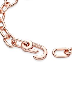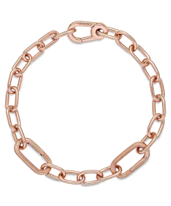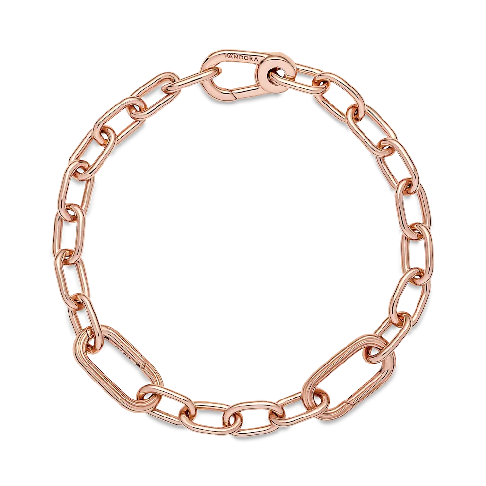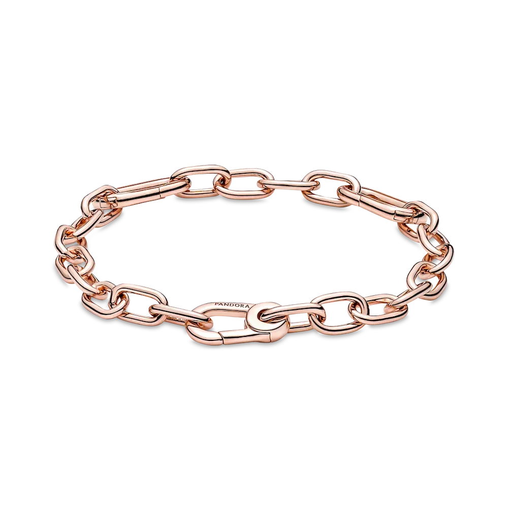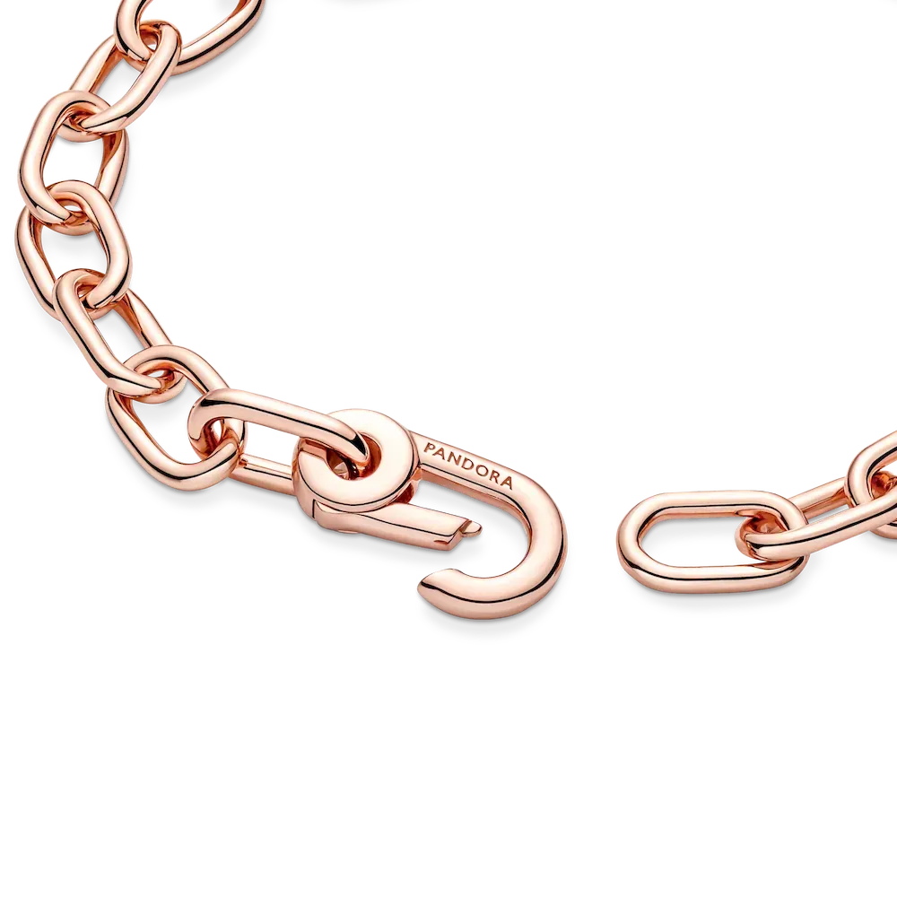 Link what you love like never before. Our 14k rose gold-plated Pandora ME Small-Link Chain Bracelet holds endless styling possibilities. The design features two openable links – designed with grooved surfaces to set them apart – a group of four links between each openable link and a carabiner clasp closure. First customise your link chain: four links can be swapped out for one styling double link or one styling link – keep the original length or adjust it to suit you. Once you’ve curated your link chain, style up to one medallion charm per link, two meaningful medallion charms or up to eight mini dangle charms on each openable link to show the world who you are. Please note this item is only compatible with Pandora ME jewelry and will not fit our other collections.