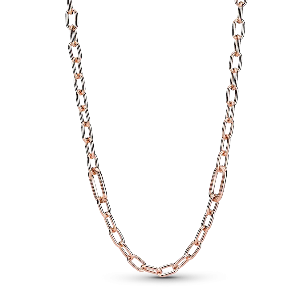 Your statement jewellery starts here: this 14k rose gold-plated Pandora ME Small-Link Chain Necklace has endless styling possibilities to choose from, with two openable links at the front – designed with a grooved surface to set them apart – twelve links between each openable link and a carabiner clasp closure. You can keep the original length, make your link chain longer or turn it into a choker, all by adding and taking away links to suit you. Once you’ve customised your link chain, remix it with meaningful medallion charms and the mini dangle charms on the openable links to tell your story. Please note this item is only compatible with Pandora ME jewelry and will not fit our other collections.