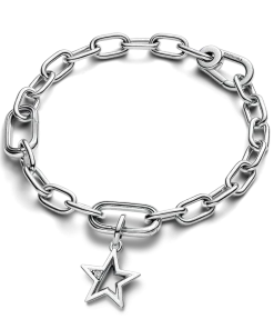 The stars are always aligned when you wear the Pandora ME Sparkling Star Medallion Charm. With a prism-shaped profile, this sterling silver star charm includes a sparkling stone hand-set in one of its five points. The reverse side features microbeads, a raised line and a triangle-shaped hole in the setting through which the stone is visible. Gift this medallion charm to someone who puts stars in your eyes, or wear it as a reminder that you’re the star of your universe. Compatible with Pandora ME and Pandora Moments.