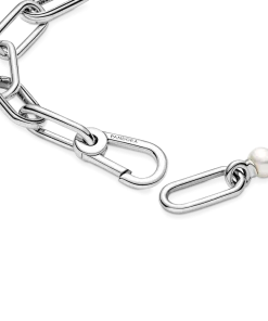 Pearls, reimagined: this sterling silver Pandora ME Treated Freshwater Cultured Pearl Bracelet takes the iconic pearl and turns it into a design with endless personalization potential. The bracelet features two openable links – designed with grooved surfaces to set them apart – that link to a row of ethereal treated freshwater cultured pearls and a carabiner clasp closure. Customize your link chain first: one set of interlocking styling links can be swapped out for one styling double link or one styling link – keep the original length or adjust it to suit you. Once you’ve curated your link chain, style up to two medallion charms on your openable links, or up to eight mini dangle charms to show the world who you are. NOTE: the relevant treatments for treated freshwater cultured pearls are bleaching or dyeing and luster enhancement. Discover how to mix and re-mix your Pandora ME look here.