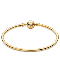 Our signature bangle for Pandora Moments charms is a luxe addition to your everyday jewelry look. The sleek style is expertly crafted from solid 14k gold, hand-finished and buffed to a high shine. It’s fitted with our classic logo ball clasp that underpins the minimalist aesthetic. Wear it with or without charms, solo or stacked.
