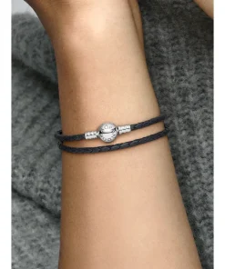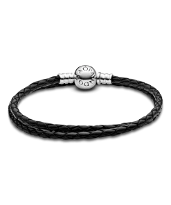 Pandora Moments Double Black Leather Bracelet