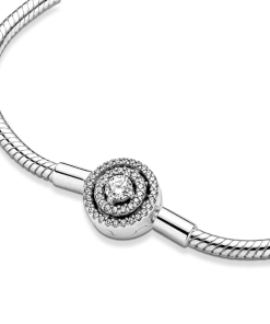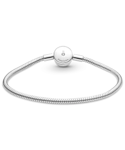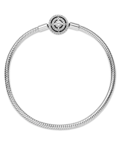 Bring timeless charm to your look with the Pandora Moments Halo Snake Chain Bracelet. Hand-finished in sterling silver, the bracelet’s clasp features a large sparkling clear cubic zirconia center stone surrounded by a double halo set with small stones, designed to create a spacious, free-floating look. Fill the bracelet with charms and clips, wear it on its own for a simply elegant look, or stack it with contrasting bracelets for a fun play on textures.
