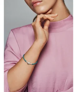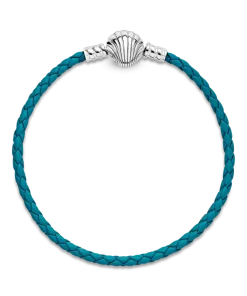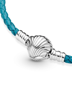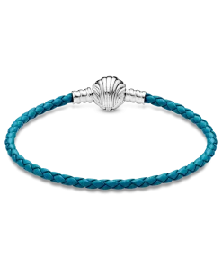 Add a pop of vibrant color to any of your outfits with the Pandora Moments Seashell Clasp Turquoise Braided Leather Bracelet. The turquoise leather’s intricate braid finishes in a sterling silver shell-shaped clasp that is inspired by the treasures of the deep and the colorful ropes used on sailboats. Wear it by itself for a splash of color or add ocean-themed Pandora Moments charms to customize your look.
