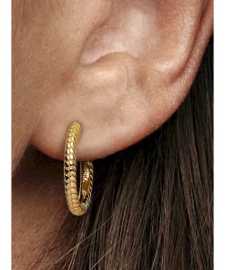 Create an instantly iconic look with the Pandora Moments Small Charm Hoop Earrings. These 14k gold-plated earrings feature Pandora’s famous snake chain pattern. These small hoop earrings have a diameter of 18 mm, compared to the existing 25 mm style, and can hold one charm or dangle charm. Sleek on their own or personalized when paired with your favorite charms, these hoops are a style win. Please note that due to the smaller size and thickness of the hoops, some charms may not fit on these earrings.