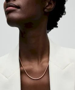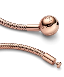 Say hello to your new jewelry box staple with the Pandora Moments Snake Chain Necklace. Hand-finished with 14k rose gold plating, this simple yet elegant design features Pandora’s iconic snake chain pattern and a ball clasp embossed with the Pandora logo. Wear it on its own or style with a Pandora O Pendant and keep your favorite charms close to your heart.