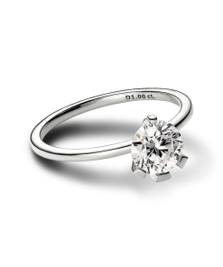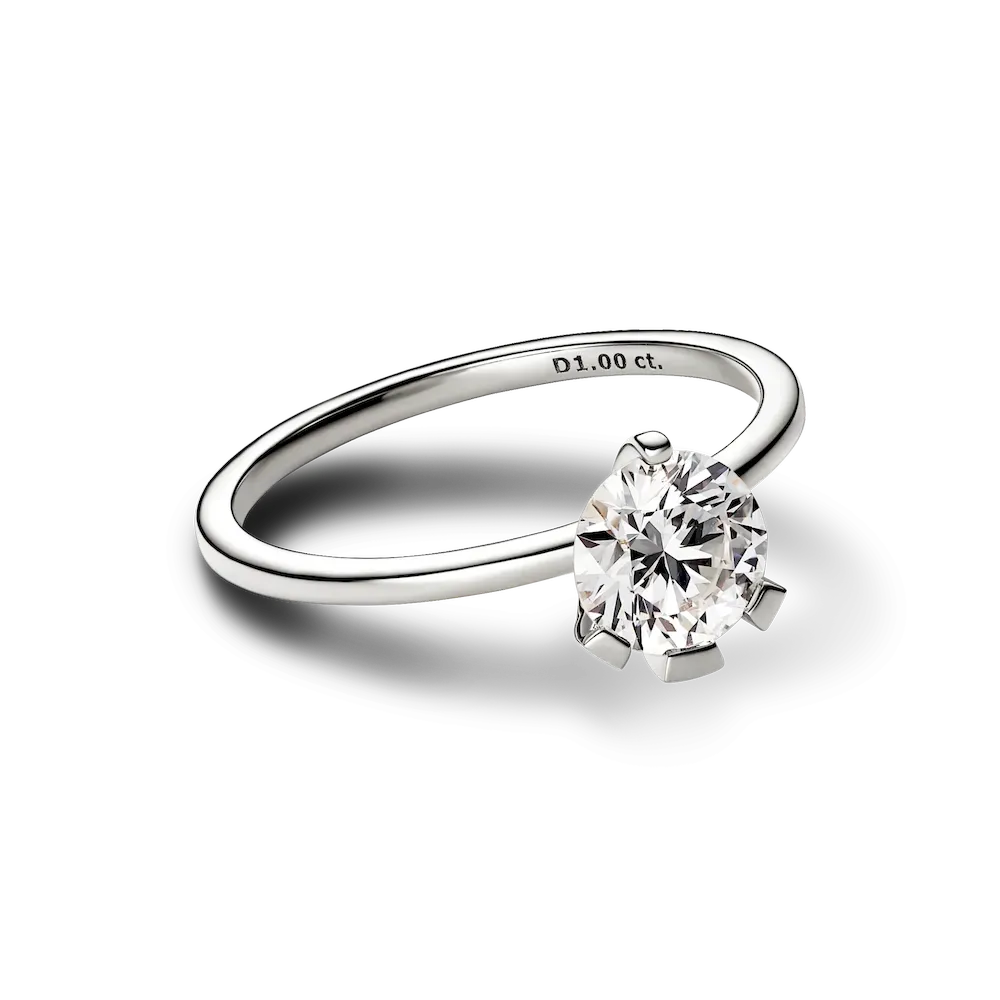 Shine in the Pandora Nova 14k White Gold Lab-grown Diamond Ring. Inspired by the illusion of capturing and holding a precious fragment of light, this 14k white gold ring showcases a 1.00 carat round brilliant excellent cut lab-grown diamond. The unique asymmetric prong setting opens the stone to the light for ultimate sparkle. A symbol of the unique light within all of us, this eye-catching lab-grown diamond ring is a piece to be worn and treasured for years to come – by you or someone who brings light into your world. Each Pandora Lab-grown diamond is treated with a post-growth color enhancement called annealing.