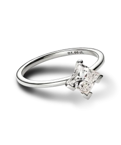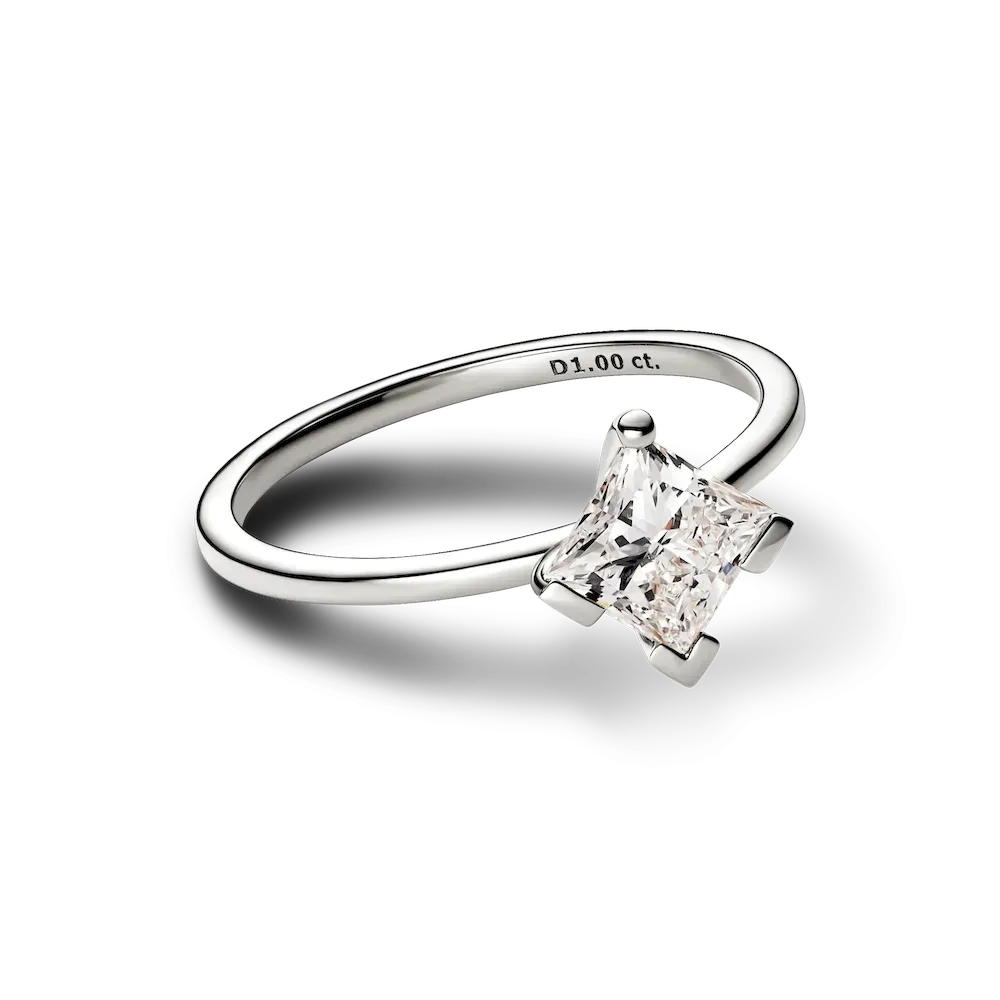 Shine in the Pandora Nova 14k White Gold Lab-grown Diamond Ring. Inspired by the illusion of capturing and holding a precious fragment of light, this 14k white gold ring showcases a 1.00 carat square princess excellent cut lab-grown diamond. The unique asymmetric prong setting opens the stone to the light for ultimate sparkle. A symbol of the unique light within all of us, this eye-catching lab-grown diamond ring is a piece to be worn and treasured for years to come – by you or someone who brings light into your world. Each Pandora Lab-grown diamond is treated with a post-growth color enhancement called annealing.