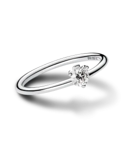 Shine in the Pandora Nova Sterling Silver Off-set Lab-grown Diamond Ring. Inspired by the illusion of capturing and holding a precious fragment of light, this luminous lab-grown diamond ring features a 0.25 carat round brilliant excellent cut lab-grown diamond set in sterling silver. An asymmetrical prong setting frames the stone, letting in the light to amplify its sparkle. The setting is placed to one side of the ring band, giving this lab-grown diamond ring a modern, dynamic touch. Wear or gift it as a symbol of the unique light within all of us. Each Pandora Lab-grown diamond is treated with a post-growth color enhancement called annealing.