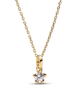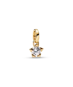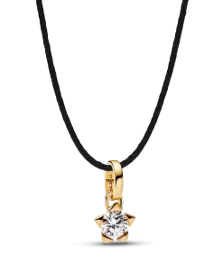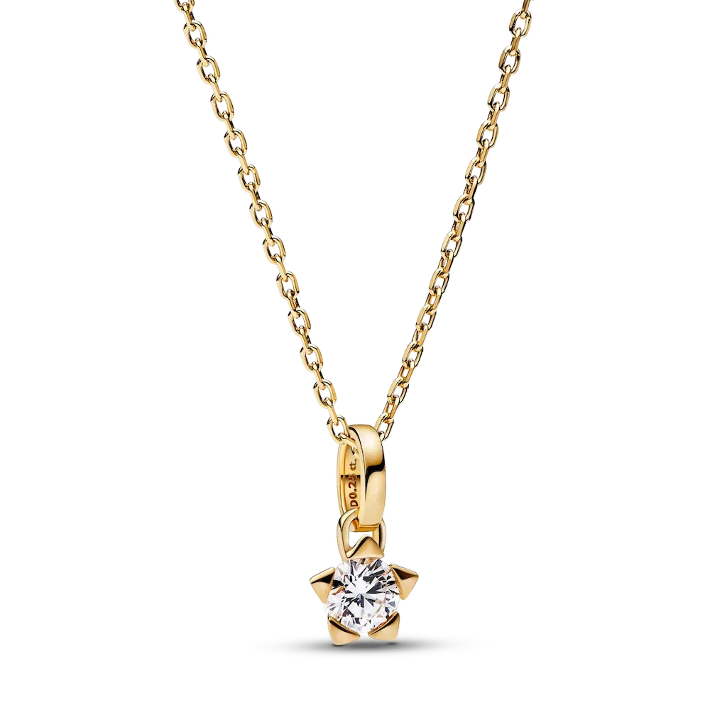 Look to the stars with the Pandora Talisman 14k Gold Lab-grown Diamond Star Pendant. Stars have been the stuff of legend for as long as we have told stories, often representing hope, guidance and our wishes and dreams. This 14k gold pendant embodies this celestial inspiration, inviting you to give it your own meaning. Five triangular prongs create a star-shaped setting embracing a 0.25 carat round brilliant excellent cut lab-grown diamond. A star-shaped cut-out on the back lets the light shine through, capturing the sparkle of starlight. Each Pandora Lab-grown diamond is treated with a post-growth color enhancement called annealing.