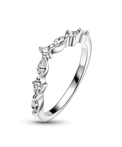 Make eye-catching statements with your everyday jewelry, with our Pandora Timeless Wish Sparkling Alternating Ring, a modern interpretation of classic ring styles. Crafted from polished sterling silver, the ring band is set to sparkle with a row of cubic zirconia in round, marquise and pear-shaped cuts. Wear yours as a single piece or layer with more sparkling Pandora Timeless rings for a modern approach to stacking that will bring timeless elegance to every look.