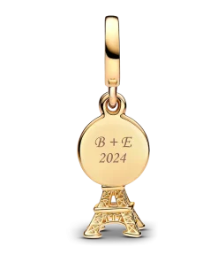 Carry a piece of Paris wherever you go with the Paris Eiffel Tower Lab-Grown Diamond Engravable Double Dangle Charm. A lab-grown diamond sparkles from the top of this tiny, intricately detailed replica of the iconic Eiffel Tower. A second dangle features a disc engraved with