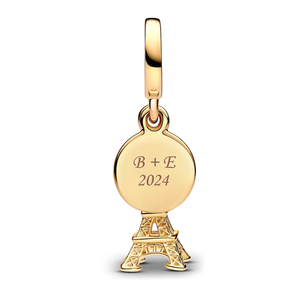 Paris Eiffel Tower Lab-Grown Diamond Engravable Double Dangle Charm