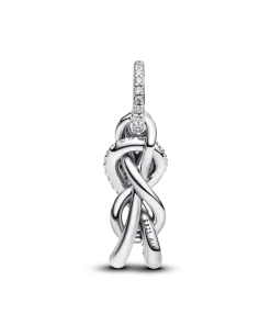 Wear a reminder that love conquers all with the Pavé Infinity Knot Dangle Charm. Hand-finished in sterling silver, this charm centres on an infinity knot symbol with along with disc dangle engraved with