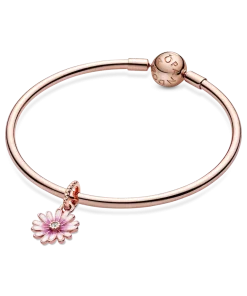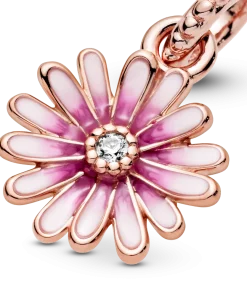 Celebrate spring in all of its glory with the Pink Daisy Flower Dangle Charm. Hand-finished 14k rose gold plating, the daisy charm features pink shaded enamel to bring the delicate, yet resilient flower to life. The sparkling centre of the flower is made from cubic zirconia and the back of the flower charm features polished heart detail. Wear as a reminder to stay strong or gift to someone as a symbol of freedom.