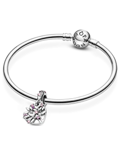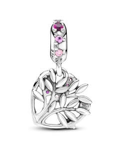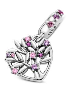 Always remember your roots with the Pink Heart Family Tree Dangle Charm. This openwork dangle charm is hand-finished in sterling silver. Inside the heart shape stands a tree at an angle with its leaves extending beyond the outline. On one side, the leaves are decorated with pink stones in various shades. This effect is mirrored on the bail for a decorative finish. Wear this piece with other family-inspired charms on your bracelet for a beautiful reminder of your loved ones.