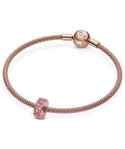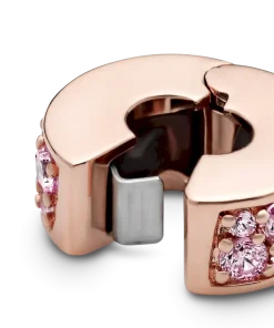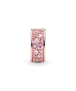 You don’t have to shout to make a strong statement. Our 14k rose gold-plated Pink Pavé Clip Charm adds a powerful touch to your bracelet, bringing both balance and beauty. Hand-finished in 14k rose gold plating, it’s pavé-set with pink cubic zirconia that lend sparkle to your look. Clip multiple charms onto your bracelet to create a symmetrical styling, or add a single piece for a minimalist look. Your mood sets the tone. This clip charm features a silicone grip, does not fit onto threads (two raised charm dividers.) This charm can be styled anywhere else on the bracelet.