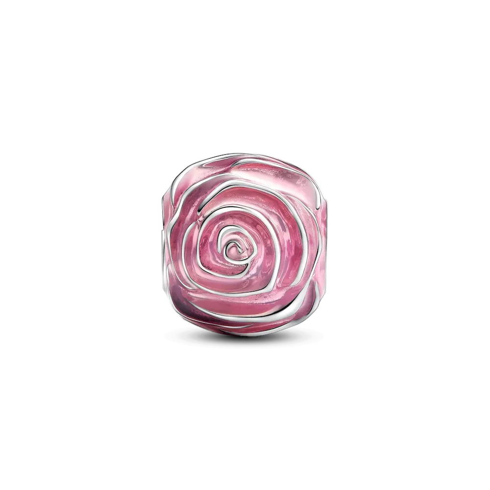 Crafted in sterling silver, the Pink Rose in Bloom Charm represents the beauty of flowers in bloom. Its symbolic design showcases a blooming rose, adorned with hand-applied transparent pink enamel. The layered petals create a three-dimensional effect, revealing sterling silver beneath the outer enamel. Inspired by the symbolism of pink roses—representing appreciation, care and gratitude—this piece is a tangible expression of love. Gift a piece of everlasting beauty and heartfelt emotion with this intricately detailed and heartfelt charm.