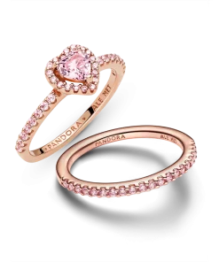 Pink Sparkling Elevated Heart Ring Set
