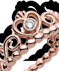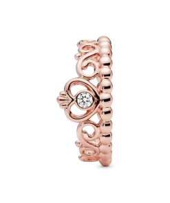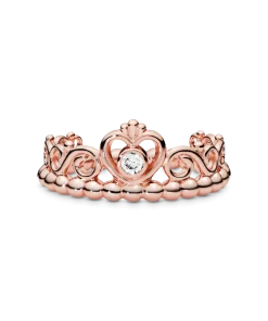 Feel like a princess every day with this magnificent Princess Tiara Crown Ring. Exquisitely plated with 14k rose gold, this enchanting style features a heart-shaped tiara design accented with a single shimmering cubic zirconia stone. Showcase the statement ring on its own or pair it with other Pandora princess rings for a fairy tale finish.