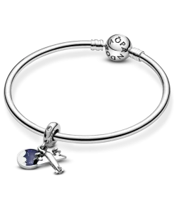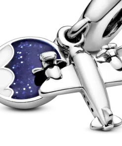 Take your style to new heights with this travel-inspired dangle charm, hand-finished in sterling silver. Made to be worn on our Pandora Moments charm bracelets and bangles, it’s shaped as an aeroplane and detailed with miniature propellers. The disc is decorated with hand-applied blue and white enamel and engraved with the words