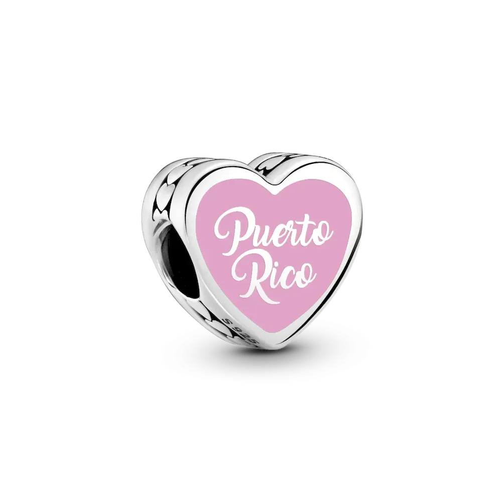 Island love in sterling silver, this Puerto Rico heart charm is a tropical treasure.