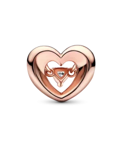 What the heart wants. Inspired by the joining of two hands to form a heart gesture, our Radiant Heart & Floating Stone Charm makes a sweet statement about the power of love. Hand-finished in 14k rose gold plating, a 3D open heart reveals a dangling heart-shaped faceted cubic zirconia within, sparkling as it catches the light. Gift it to the one who completes you.