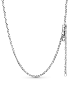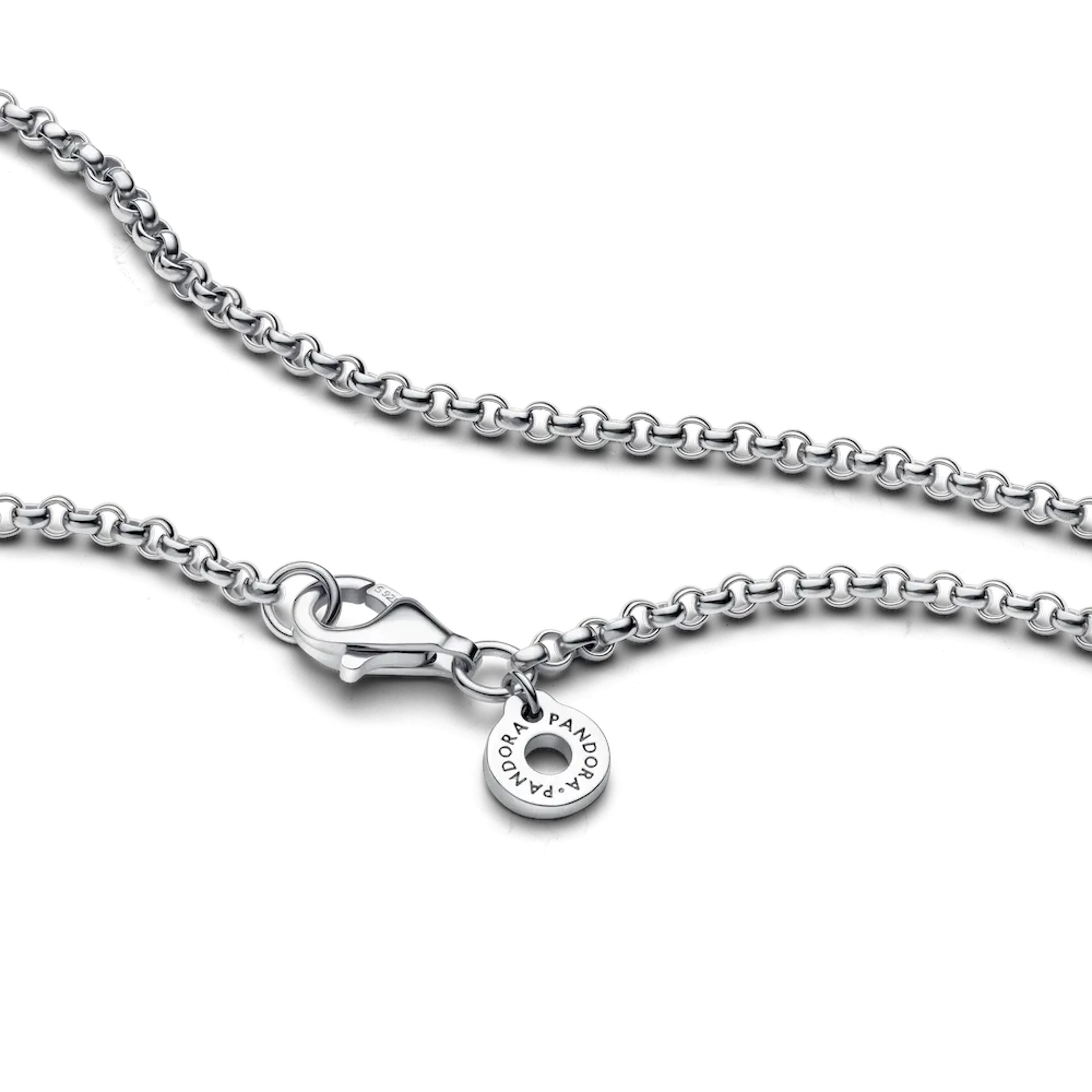 Discover a new way to wear your go-to charms with the Rolo Chain Necklace. Hand-finished in sterling silver, this simple design is adjustable to three different lengths. This piece can only be worn with small and medium-sized Pandora O Pendants. Attach a pendant with a sparkling ball clasp to make a statement. Team with sterling silver earrings decorated with stones for a uniform look with added shine.